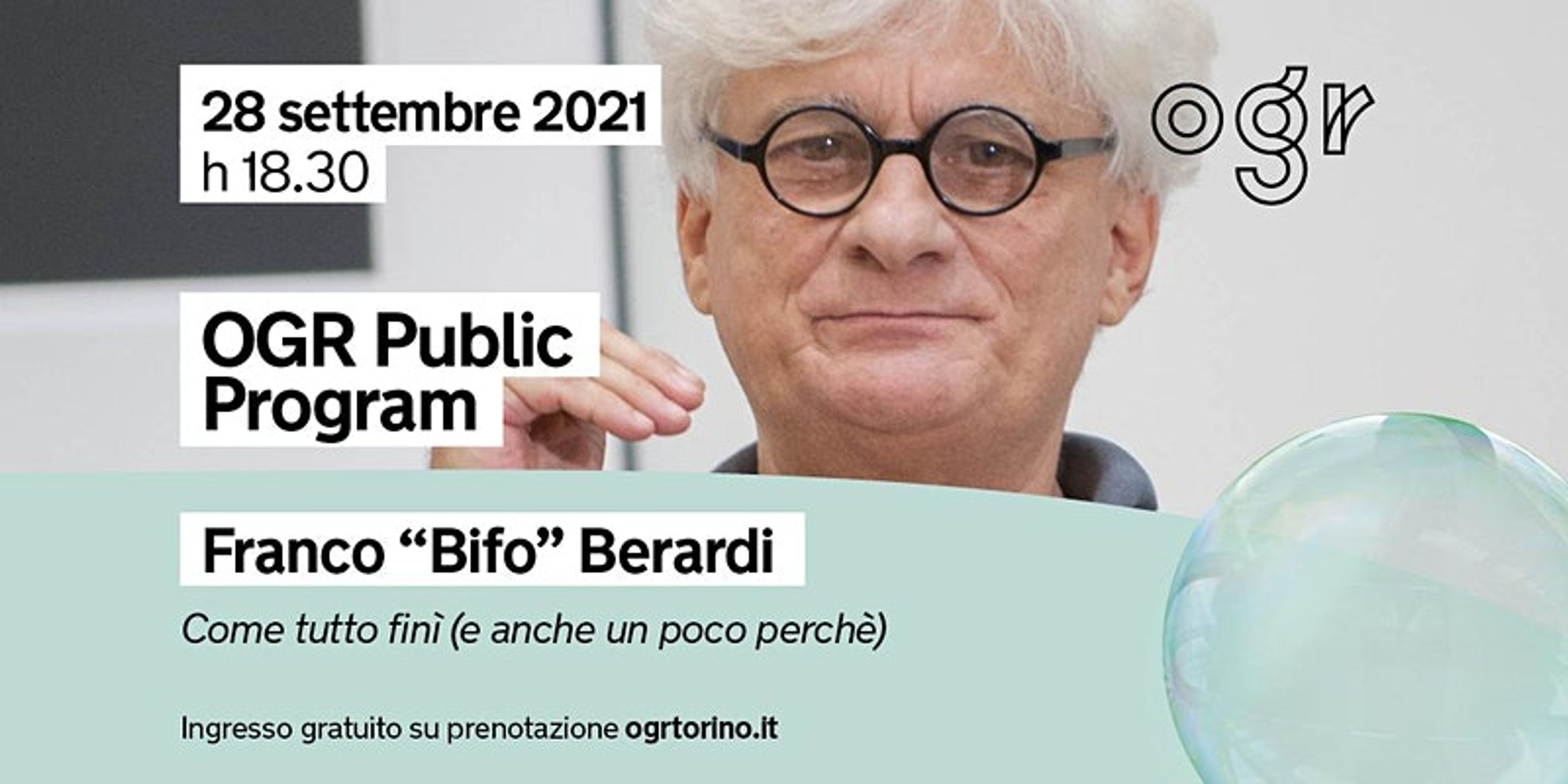 Nell'ambito della mostra Vogliamo tutto, Franco Bifo Berardi interviene in qualità di ospite per attivare un confronto dialogico con il pubblico e capire perché e in quale momento storico le premesse della lotta sessantottina abbiano subito una battuta d’arresto per poi prendere una strada del tutto differente.